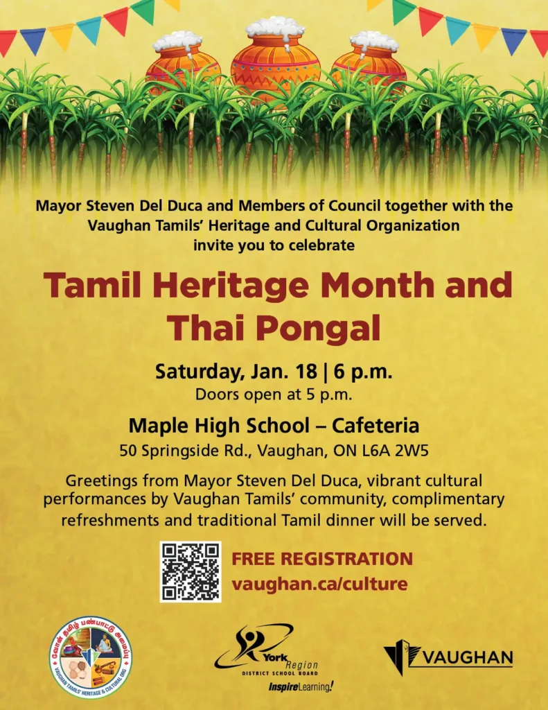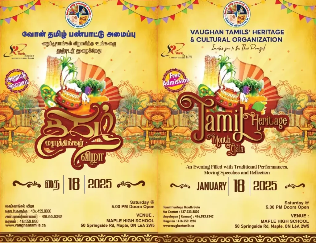 Dear Vaughan Tamils, We are getting ready for the Tamil Heritage and Thai Pongal Celebration on January 18th, 2025, and